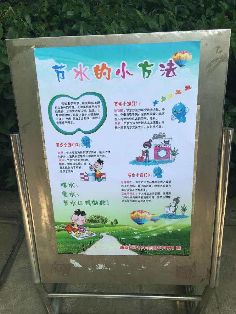 西安市多年平均降水量750.4毫米,多年平均水资源总量23.47亿立方米,人均占有量260立方米,属于典型的资源性缺水城市。为高效合理利用水资源,切实做好节水型小区建设工作,经发物业多措并举,持续提升节水管理精细化水平。一是不断加大节水宣传力度,通过宣传条幅、标语、海报、展板等多种形式开展节水宣传教育,加强节水管理理念;二是联合西安市水务局在小区开展节水宣传专题活动,向业主发放节水宣传资料上千份,将“珍惜生命之源”、“惜水、爱水、节水从我做起”等环保节水理念融入社区各个角落;三是积极推广节水技术与节水产品应用,大力实施节水改造,深挖小区节水潜力,采用感应式水龙头、喷泉水资源循环利用等多种方式有力推进小区节水管理进程。